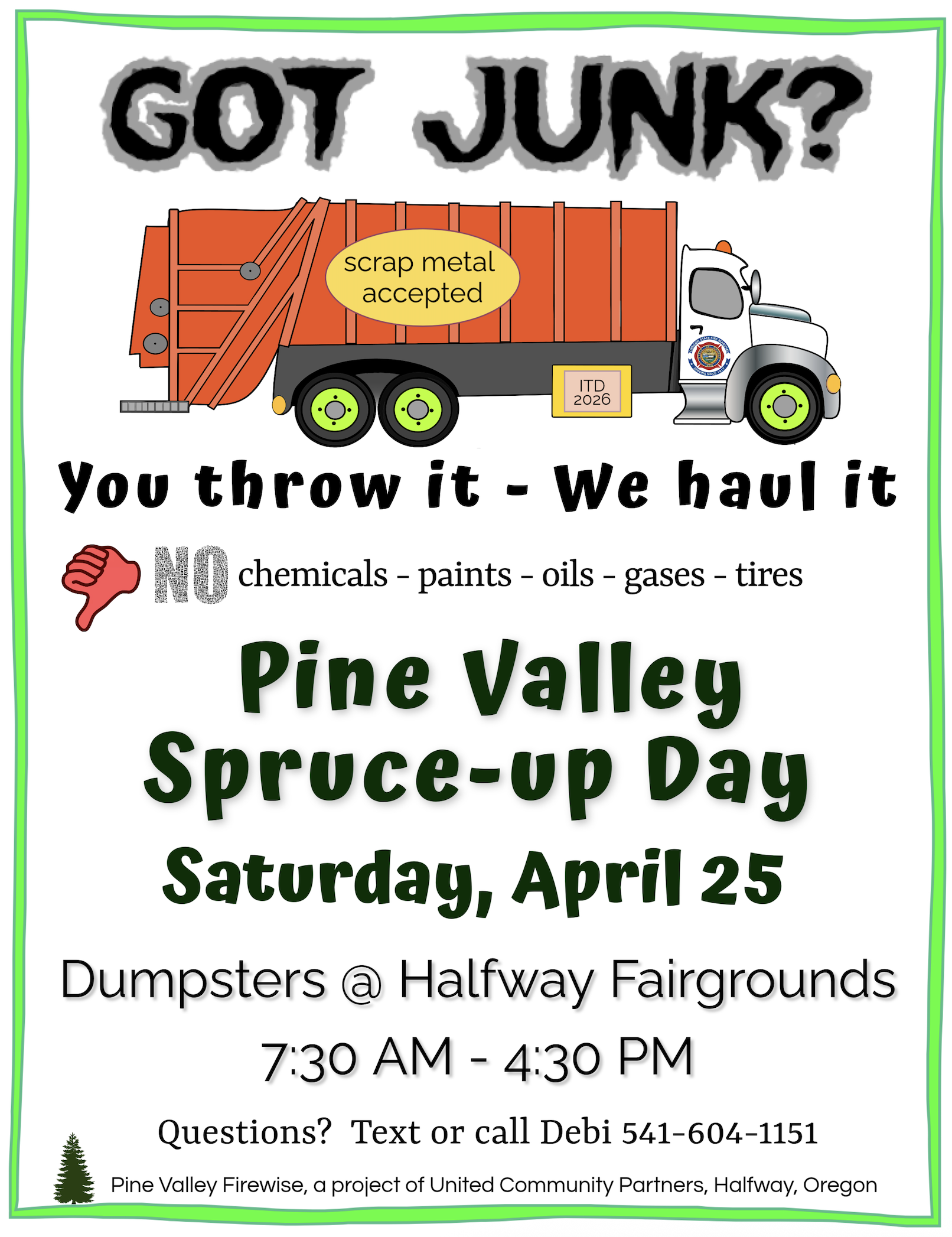 April 25th 7:30am to 4:30 pm FREE Dumpsters